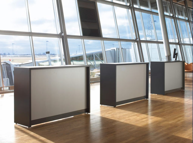 Vælg din virksomheds logofarve eller yndlingsfarve på skrankefronten for at signalere, at der er tænkt på alle detaljer. På fronten har du desuden mulighed for at vælge en påtrykt ‘RECEPTION’ tekst.